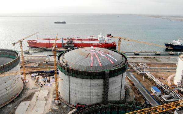 11月15日,由中石化第四建設有限公司承擔的國家管網天津液化天然氣(LNG)二期項目儲罐工程,22萬立方米低溫儲罐4#罐歷時140分鐘實現氣頂升圓滿成功。該儲罐為國內自主研發設計單罐容量****的系統外LNG儲罐工程,外罐內直徑91米,拱高12.192米,拱頂跨度91米,拱頂行程42.395米,重約1050噸。石化四建公司項目部表示,在后續的項目建設中,將以高標準、高質量建設好優質工程,助力國家管網集團天津液化天然氣公司為實現雙碳目標、構建清潔低碳高效能源體系、帶動天津天然氣產業發展貢獻力量。圖為低溫儲罐正在進行氣頂升作業。 (曲照貴 曲曉龍 唐陜峰 攝影報道)